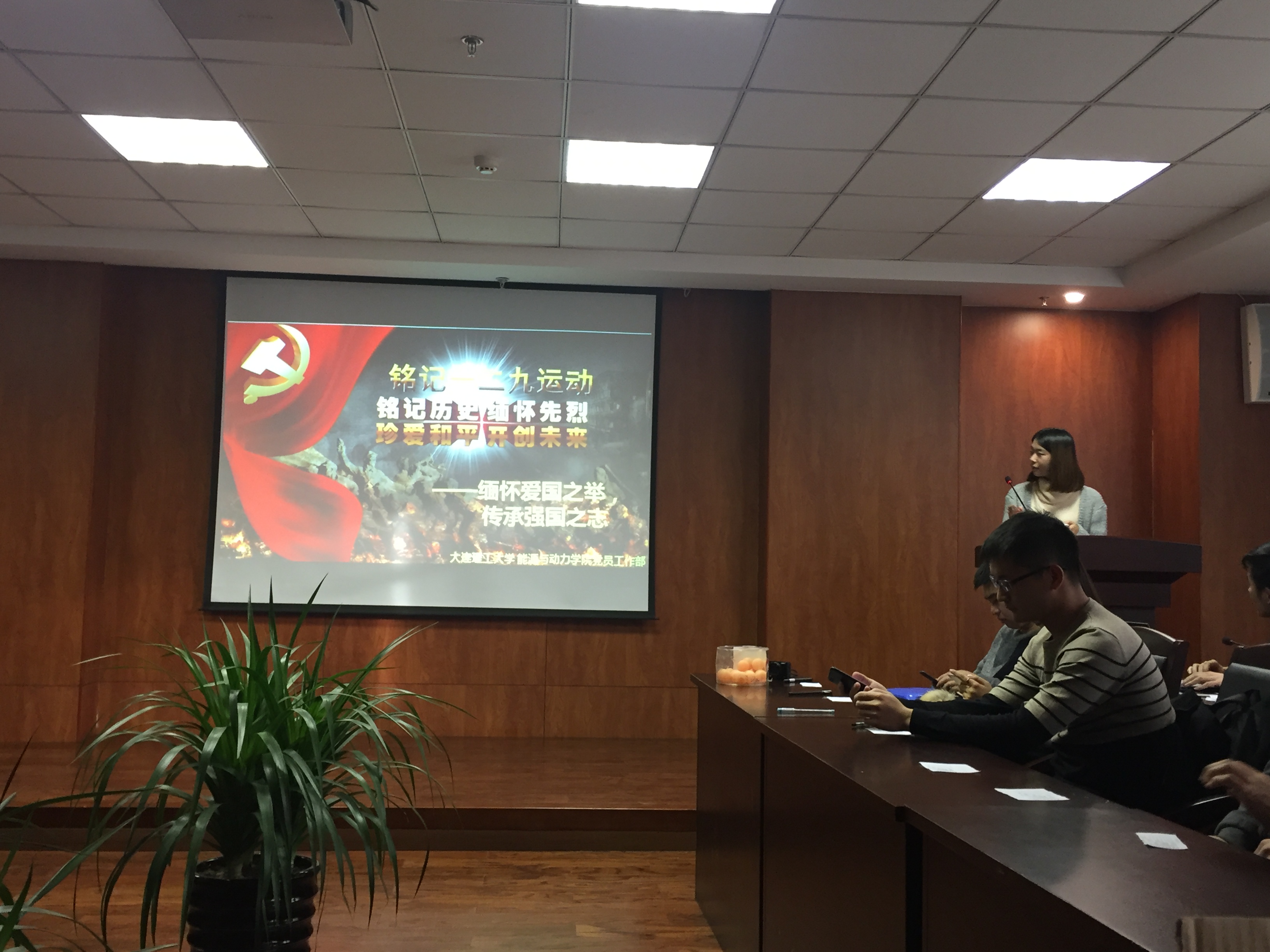 一二·九运动,又称为一二·九抗日救亡运动。1935年12月9日,北平(北京)大中学生数千人举行了抗日救国示威游行,反对华北自治,反抗日本帝国主义,要求保全中国领土的完整,掀起全国抗日救国新高潮。这是中国共产党领导的一次大规模学生爱国运动,得到了全国学生的回应和全国人民的支持,形成了全国人民抗日民主运动的新高潮,推动了抗日民族统一战线的建立。为了纪念“一二·九”运动,发扬“一二·九”运动的光荣传统,发扬革命先辈的爱国情怀,12月9日,能动学院党员工作部在能动楼518会议室组织了主题为“缅怀爱国之举,传承强国之志”的活动。